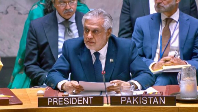 Ishaq Dar urged the international community to reaffirm its support for multilateralism and enhance the United Nations’ mechanisms for peaceful dispute resolution.Speaking at the UN Security Council Ishaq