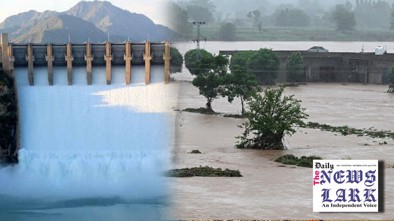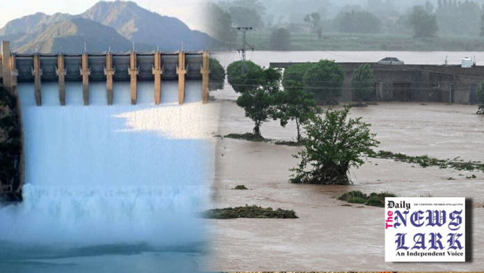 Under-construction protective dam ‘T-5 Extension 1550 Project’ and side area have been flooded after an increase in water discharge in Tarbela Dam spillway.