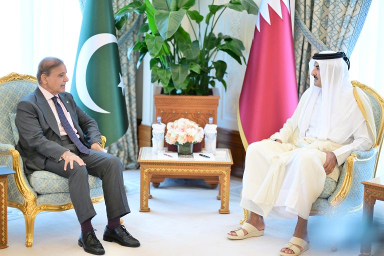 The prime minister, during his meeting with the Amir of Qatar Sheikh Tamim bin Hamad Al Thani, the prime minister conveyed Pakistan’s strongest condemnation of the Israeli attack on Doha on September 9, terming it a blatant and flagrant violation of Qatar’s sovereignty and territorial integrity.