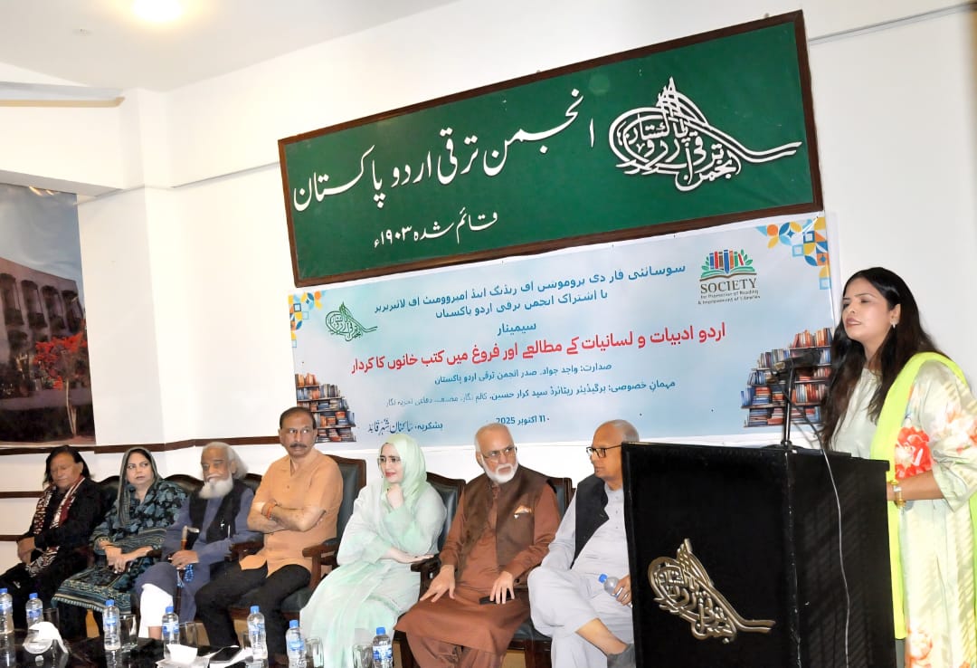The seminar, held under the joint auspices of the Society for the Promotion of Reading and Improvement of Libraries (SPRIL) and Anjuman Taraqqi-e-Urdu Pakistan, took place on 11 October 2025, in the heart of Karachi. The theme for the event was both thought-provoking and timely: