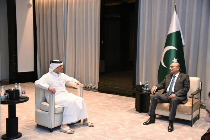First Lady Bibi Aseefa Bhutto Zardari, Chairman Pakistan Peoples Party Bilawal Bhutto Zardari and Pakistan’s ambassador to Qatar were also present during the meeting.