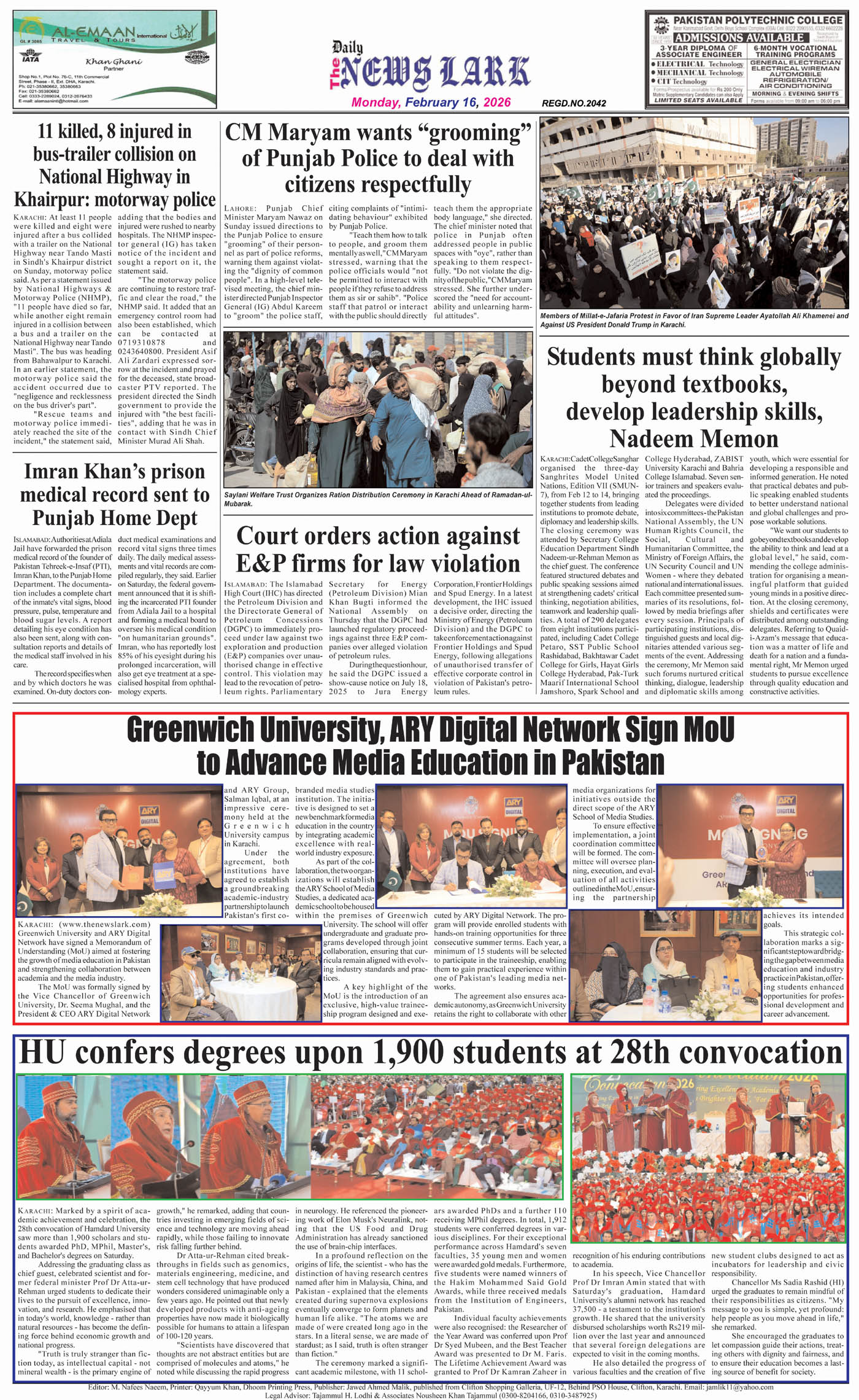 Home Epaper 16-02-2026 Epaper 16-02-2026 By Author - February 16, 2026 3 0 FacebookTwitterPinterestWhatsApp First Page Page 2 Page 3 Page 4 Page 5 Last Page RELATED ARTICLESMORE FROM AUTHOR Epaper 14-02-2026 Epaper 13-02-2026 Epaper 12-02-26 Epaper 11-02-2026 Epaper 10-02-26 LEAVE A REPLY Cancel reply Please enter your comment! Please enter your name here You have entered an incorrect email address! Please enter your email address here Save my name, email, and website in this browser for the next time I comment.