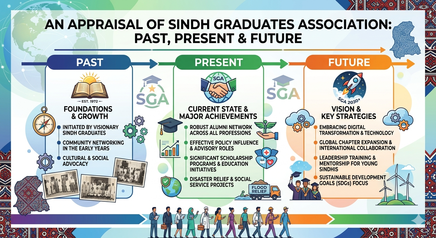 The Sindh Graduates Association (SGA) stands as one of the most vibrant and credible civil society organisations in Pakistan, with a legacy rooted in selfless service, intellectual leadership, and community development. It is both a privilege and an honour for me to reflect on its journey—past, present, and future—especially in the company of dedicated volunteers who continue to uphold its noble mission.